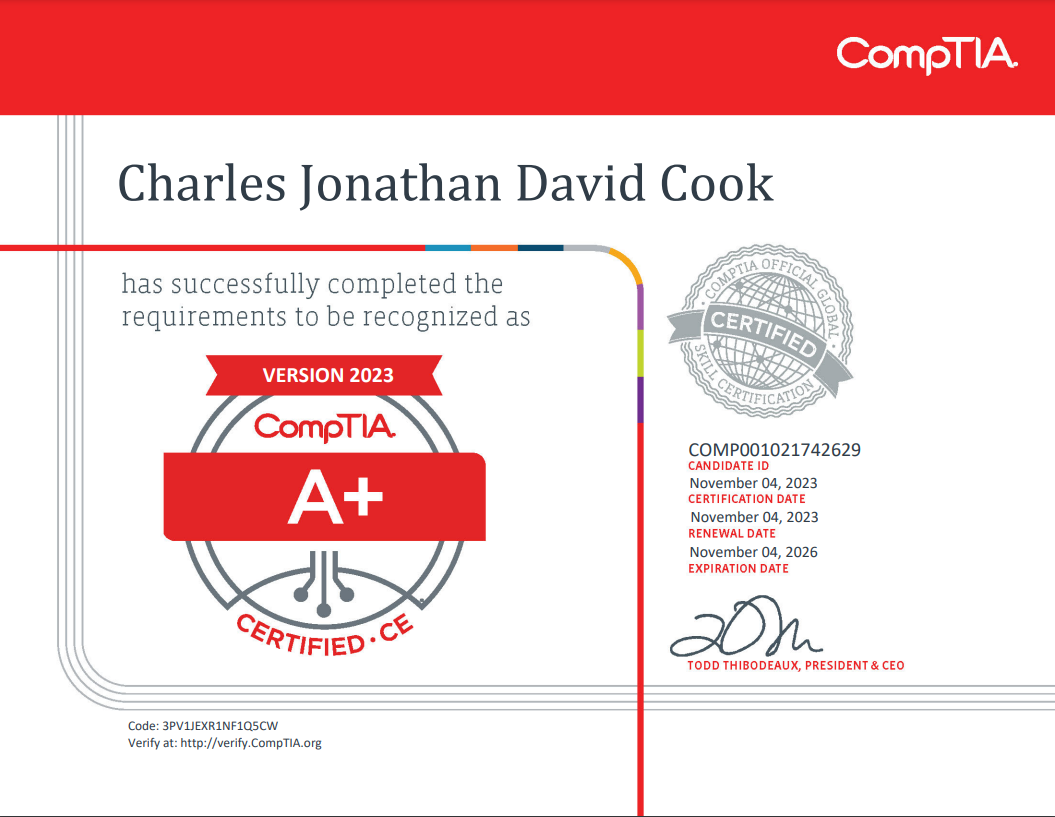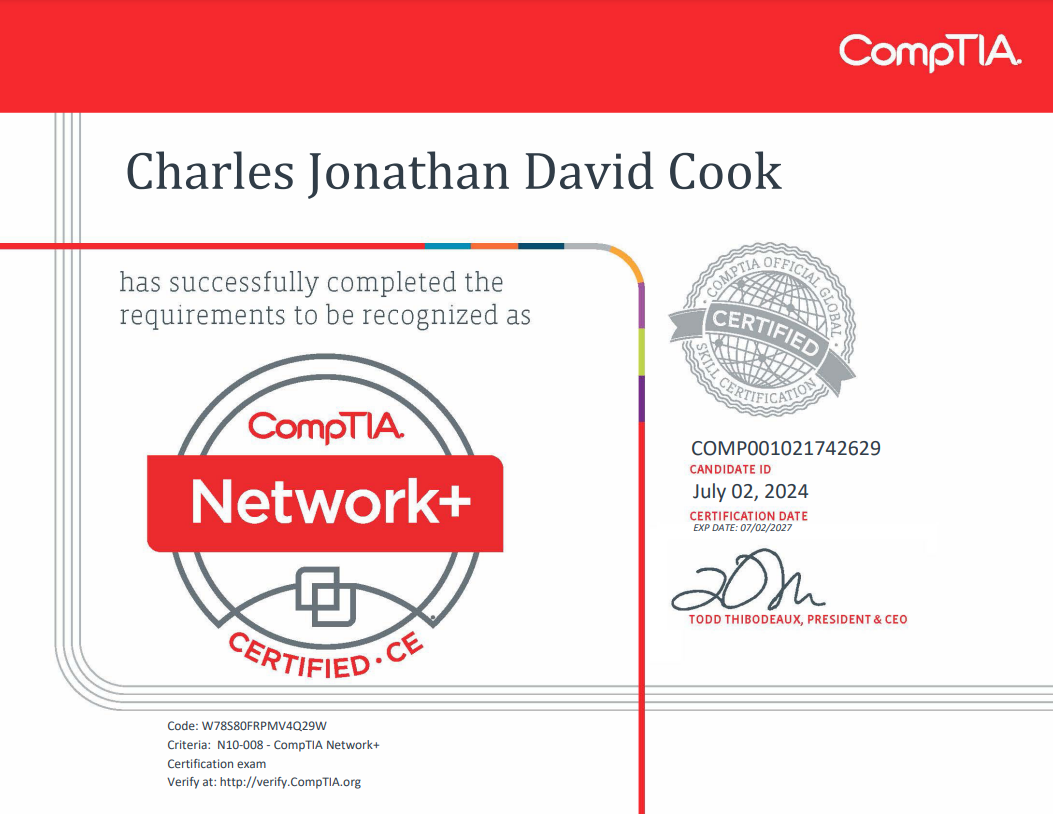 maintenance. I am currently advancing my education with a Bachelor of Science in Cybersecurity and Information Assurance at Western Governors University, anticipating graduation in May 2026. My academic journey is complemented by CompTIA certifications in Security+, Cloud+, and A+, illustrating my dedication to expanding my knowledge and expertise. My background includes valuable military experience, where I developed a comprehensive skill set in communication systems, system administration, IT helpdesk operations, and leadership, significantly enhancing my technical and collaborative capabilities.