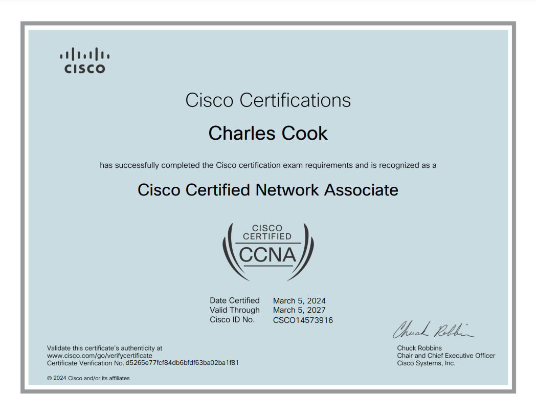 As I look to the future, I am focused on obtaining my Cisco Certified Network Associate certification and continuing to contribute significantly to the field of network operations and security. My goal is to leverage my skills, experience, and passion for technology to inspire others and make a lasting impact.